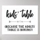 Este divertido cartel de boda es la manera perfecta de marcar la mesa de los niños en la recepción de tu boda.