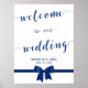Señal de recepción de boda azul y blanco real con arco negro y texto de personalizable - puedes añadir el nombre de novia y novio y fecha boda. Las dimensiones de la huella de signo (poster) son de 18 pulgadas por 24 pulgadas.