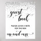 Las piezas de esta colección muestran frases destacadas representadas en un tipo de letra distintivo y elegante acentuado por los corazones, junto con confetti de color plateado. En este cartel, el texto del guión dice "libro de invitados" y "mr y mrs". Todas las capas se agregaron por separado y se dejaron sin bloquear para que pueda cambiar el tamaño o la reposición según sea necesario, junto con cualquier otra adición que considere adecuada. // 80 //