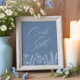 Póster Rótulo de regalo de la tarjeta azul perwinkle Boda