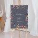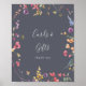 Este clásico símbolo de tarjetas y regalos de flores silvestres es perfecto para una ducha rústica de boda o de novia. El diseño se compone de flores silvestres amarillas, violetas y blancas con follaje en un fondo de color rosa y verde. Haz que la línea de texto en la parte inferior del cartel sea tuya, incluyendo la fecha, los nombres de la novia y el novio o un mensaje corto como "Gracias". Este signo puede complementar a un boda, cualquier evento o fiesta.