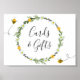 El tema de las abejas se firmó para "tarjetas y regalos". Personalice con una línea de texto personalizado en letras de caligrafía (mostradas con "Tarjetas y Regalos"), enmarcada por una corona de color de agua de margaritas y vegetación rodeada de abejas zumbantes.