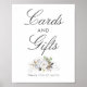 Póster Rótulo de tarjetas y regalos de boda floral blanca