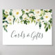 Diseñado para coincidir con nuestra colección de bodas alabastro floral, este elegante cartel botánico le permite a los huéspedes saber dónde dejar sus tarjetas y regalos. Personalice con una línea de texto personalizado en letras caligráficas (mostradas con "Tarjetas y Regalos"), enmarcadas por flores de acuarela blanca y follaje verde exuberante.