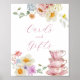 Póster Rótulo de tarjetas y regalos de té con flores silv