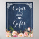 Póster Rótulo de tarjetas y regalos florales Blue Chalkbo
