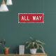 Un cartel que dice Todo el camino sobre un fondo rojo. Este diseño parece realmente efectivo en este Poster