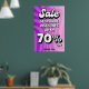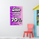 Cartel de venta en rosa y morado, diseñado para tiendas minoristas, boutiques y cabinas. Puede editar los textos utilizando la función "Personalize It".