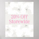 Póster Rótulo De Venta Rosa, Poster De Venta 20% Fuera De
