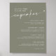 Nuestro Rótulo Boda Sage Green Dessert Cupakes Menu es una deliciosa mezcla de encanto y elegancia. Se elabora con cartón de primera calidad y presenta delicadas obras de arte floral en suaves tonos verdes. Personalízalo con sus nombres, fecha de boda y un delicioso menú de postres. Tanto si sirve pasteles, pasteles o dulces, este cartel es el tono perfecto para su día especial.
