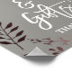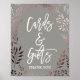 Este elegante signo de oro y gris rosa y de regalos es perfecto para un boda elegante o una ducha de novia. El diseño presenta un impresionante marco de hojas rosadas sobre un fondo gris oscuro y está emparejado con un llamativo tipo de letra cursiva. La línea de texto al final del cartel puede ser personalizada con la fecha, los nombres de la novia y el novio, o un mensaje corto como "Gracias". Nota: Este diseño no tiene Relieve metalizado de oro rosa real. Es un gráfico de alta calidad hecho para que parezca oro rosa sucio.