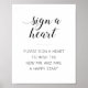 Este elegante signo de un signo cardíaco presenta un estilo minalista en blanco y negro con una mezcla de escritura a mano y tipos de letra de bloques simples. Estas cajas de chorro de corazón pueden hacer una gran alternativa a un libro de visitas tradicional. Parte de la colección Alejandra.