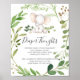 Dé a sus huéspedes una dirección encantadora con nuestros pensamientos de pañales de elefante signos de actividad de ducha de bebé, con vegetación acuática eucalipto garland y elegante tipo de letra manuscrita.