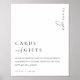Este signo de tarjetas y regalos presenta un diseño minimalista y un encabezado moderno de guión de caligrafía. El encabezado del texto del guión es una imagen que no se puede editar. La imagen del encabezado se puede redimensionar para que se ajuste a cualquier tamaño del poster. El resto del texto es totalmente editable. Para una personalización más avanzada de este diseño, simplemente seleccione el botón "Personalizar" de arriba.