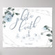 Dusty Blue Floral para coincidir con tu tema boda, guía a todos a la foto Booth para grandes fotos del evento! Rosas acuáticos, hojas y bayas en azul polvoriento de moda moderna rodean un marco plateado geométrico estilo terrario con vegetación de sabores. texto personalizar, estilo de fuente, color y tamaño. Obra de arte original creada para la BarefootBride™ por © WhimsicalArtwork™ - Esta es parte de una suite Boda Stationery con boda, ducha de bebé y otras papelería de eventos a juego.