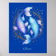 Poster en un ilustracion del signo zodiaco Pisces con dos grácilmente entrelazados peces koi azul y morado, reflejando dualidad, emociones profundas y una conexión con los sueños, la espiritualidad y el subconsciente.