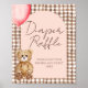 Póster Rótulo Raffle de pañal de osito rosado Rubor