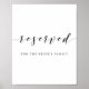 Cartel de la mesa reservada para bodas diseñado por personalizados con un diseño moderno minimalista en blanco y negro.
