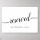 Este elegante y fresco signo de caligrafía negra reservada es perfecto para una simple ducha de boda o de novia. La línea de texto al final del cartel puede ser personalizada con la fecha, los nombres de la novia y el novio, o un mensaje corto como "Gracias". Este signo se puede usar para un boda o para cualquier evento o fiesta.