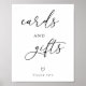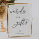 El moderno signo Minimalista de "Tarjetas y Regalos" para su mesa de regalo. Con un elegante guión caligráfico.