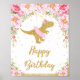 Póster Rótulo T-Rex, Fiesta de cumpleaños feliz de dinosa