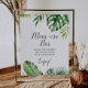 Este signo de barra de mamá-osa es perfecto para una ducha de bebé con temática de playa. El diseño presenta una exótica variedad de hojas de plátano de palmera de color agua verde, helechos, follaje, plantas botánicas y vegetación para un ambiente tropical de verano.