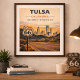 This premium Route 66 poster celebrates Tulsa, Oklahoma, the historic gateway to the Mother Road. The artwork features a stunning perspective of the city skyline at sunset, with the iconic highway shield positioned prominently along the winding road. Rendered in a nostalgic, textured style that honors the 100-year anniversary of American road travel, this high-quality poster is a must-have for historians and Americana enthusiasts. This professional-grade poster is designed with a weathered, vintage finish, making it a sophisticated addition to any home office, gallery wall, or living room. Commemorate the 1926-2026 milestone with this striking tribute to the city where the idea for the legendary 2,448-mile journey was born.