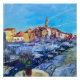 Pintura moderna, Rovinj antiguo en Croacia y flores