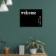 Poster de signos boda moderno con un diseño simple y mínimo con "bienvenida" en tipografía en negrita blanca sobre un fondo negro. Los colores pueden cambiarse a cualquier color que elija en la herramienta de edición de diseño. Este moderno cartel de bienvenida boda es ideal para un boda temático de gótico o halloween.