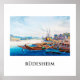 Digitalmente restaurado y mejorado: Rüdesheim del suroeste, visto desde el puerto del Rin en Bingen (Alemania) - un acuatint de Johann Ludwig Bleuler (creado antes de 1840).