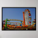 Rueda de la fortuna y montaña rusa como se ve en un carnaval en un muelle.