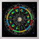 Una rueda Zodiac color mostrando los 12 signos Zodiac incluidos son los nombres, símbolos, colores e imágenes. La decoración es magnífica para los amantes de los horóscopos.