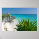 Pirámide maya sobre una playa de arena blanca y aguas azules en Tulum, México, al sur de Cancún.