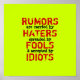 Cita y artista editada: Elizabeth Medina. Escribir mal la palabra difundida se hizo intencionalmente para expresar mejor el sentimiento. LOS RUMORES SON LLEVADOS POR ODIADORES, DIFUNDIDOS POR ALIMENTOS Y ACEPTADOS POR IDIOTAS. ¡Difunde la palabra! Gossip, truismo, chismes, palabras para vivir. CAMBIAR CUALQUIER POSTER A UN CANVAS. ¡SATISFACCIÓN GARANTIZADA O DINERO DE REGRESO! Cambiar el fondo a cualquier color, tamaño, papel o forma en la mayoría de los diseños y productos. Puedes posicionar el arte en cualquier parte, añadir tu nombre, frase favorita o el logotipo de empresa/empresa. ¡Regalo como regalo para ti o para tu ser querido! Excelente para REVENTA. Cuanto más pidas, más ahorras dinero. Copyright. Coincidir con otros elementos. Si tiene alguna pregunta o dificultad con un pedido, por favor llame al TEL: 1-888-892-9953 en los Estados Unidos o (408) 983-2800 International. Horas: de 8AM a 6PM PST (de 11am a 9pm EST), de lunes a viernes. Enlazar este o tantos otros artículos favoritos que te gusten a tu facebook, twitter, blog, sitio web personal, sitio web de negocios y más. Twitter cualquier artículo y hacer $$. Es libre de registrarse. ¡MUY FÁCIL DE ENLAZAR! Comuníquese con el servicio al cliente para registrarse.