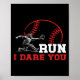 Póster Run I Dare You Funny Baseball Catcher Baseball Pla