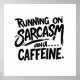 A witty and relatable design for anyone whose daily fuel consists of sharp sarcasm and strong caffeine. Features distressed, bold text and small graphics of a coffee cup and lightning bolts. Perfect for coffee lovers, those with a dry sense of humor, or anyone needing a boost to get through the day.