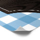 Signo de barra mosa de gingham azul rústico con grano de madera, girasoles y tu monograma encima de utensilios bbq cruzados.