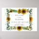 Rustic sunflower wedding welcome poster featuring watercolor sunflowers and greenery. Text editable in the Zazzle editor.