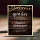 Our Wedding has an Open Bar, it is also being heavily photographed. So all Drunken Shenanigans will be well Document and Thoroughly mocked for years to come poster, in modern rustic design, cottage dark wood, string lights theme.