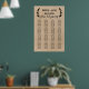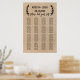 Este rústico poster de boda de moda de imitación kraft es perfecto para un boda de moda. El diseño presenta una divertida tipografía con letras a mano con deliciosos bucles y remolinos rodeados de una sencilla corona de ramas de olivo. Este poster boda tiene capacidad para 16 mesas (160 personas). Además de la ubicación de cada invitado, personalice este cartel con los nombres de la novia y el novio y la fecha del boda. Nota: Esto no está impreso en papel kraft real. Es un gráfico de alta calidad hecho para parecer un papel kraft.