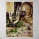 "Casa es donde está el vino" ~ Bonita foto rústica con vasos rojos y blancos de vino, uvas y un barril de vino vintage para el experto en vinos.