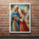 Ruth 1 Ruth va con Naomi En esta conmovedora escena, Ruth y Naomi caminan de la mano, simbolizando lealtad y devoción. El tranquilo campo, con frondosos campos y una modesta cabaña, destaca los temas de la sencillez y los nuevos comienzos. La vibrante vestimenta de Ruth refleja su fuerza y coraje mientras sigue a Naomi en este viaje de fe. Sus expresiones compasivas y sus manos entrelazadas capturan la unidad y la confianza. Esta hermosa representación, inspirada en el Libro de Ruth, recuerda a los espectadores el poder duradero del amor, la resiliencia y las relaciones fieles durante las temporadas más desafiantes y transformadoras de la vida.