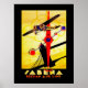 Cartel de viaje aéreo vintage de la ya extinta aerolínea belga Sabena, que muestra un avión de hélice sobrevolando el puente de la Torre de Londres con un diseño de brújula y mapa de ruta, todo ejecutado en brillante estilo Art Déco.