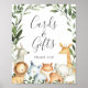 Give your guests a lovely direction with our safari animals cards and gifts sign, featuring watercolor greenery eucalyptus garland and elegant handwritten style font.