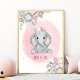 Póster Safari de Elefante Acuarela Rosa para Habitación d