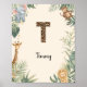 Póster Safari Jungle Personalized Name Monogram T Nursery