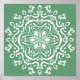 Esta mandala blanca se asienta sobre un fondo gris-verde. Los colores son naturales y relajantes. Parte de la colección Losonieth Mandala.