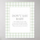 Póster Sage Green Gingham Baby Shower no dice Rótulo infa