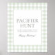 Póster Sage Green Gingham Baby Shower Pacifier Hunt Rótul