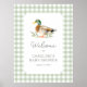 Bienvenidos amigos y familiares a su ducha de bebé con este cartel de bienvenida con temática de patos de gingham verde.